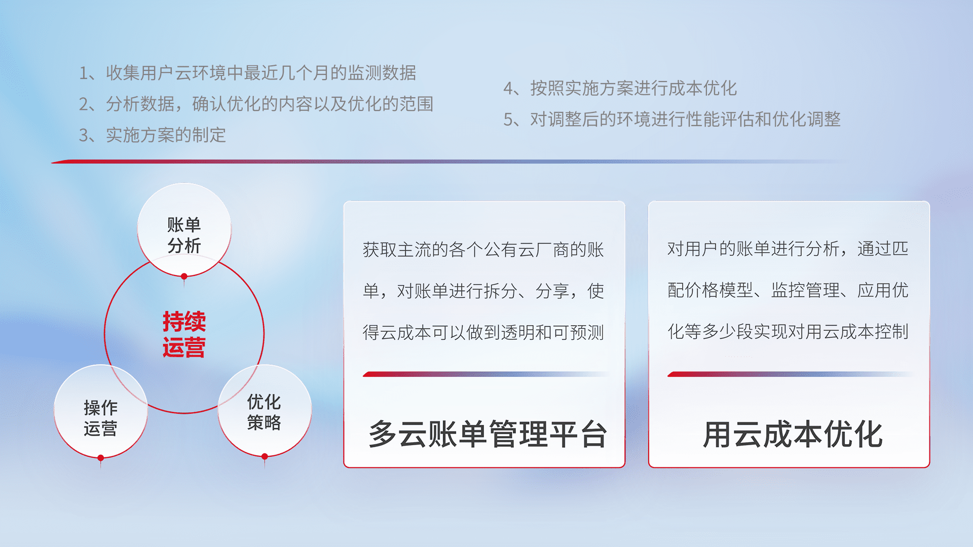 监控业务系统资源开销,,,对资源的消耗精确计量,,实现费用的透明化管理,,,不断提升资源使用率,,,,调整资源购买方式,,,降低资源费用成本,,,用云成本可预测、、用云费用可优化,,,云资源配额有据可依。。